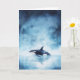 An orca glides through the tranquil ocean, set against a serene and starry night sky. The orca’s sleek, graceful figure contrasts beautifully with the dark blues and soft purples of the cosmos. The calm water reflects the stars above, creating a peaceful, otherworldly atmosphere. This stunning image captures the harmony of nature, where the majesty of marine life meets the vastness of the universe in a breathtaking display.