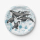 Orca whales ancient blue paper plates