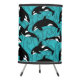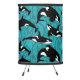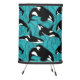 Add an aquatic touch to your room with this lamp that features illustrations of orcas or killer whales in black and white set against a teal blue ocean waves background.