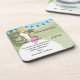 Cute Blonde Bridesmaid in Gown Keepsake Coasters -Cute Buntings Hanging from a Fruit Tree with Orange Berries and Green Damask Hills and Blue Damask Sky