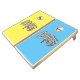 Natural Wood Cornhole Set, Royal Blue and Yellow bags