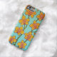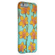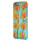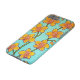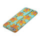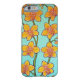 Stylized painting of orange sunset coloured orchids on a striking blue/azure background on an iPhone 6/6s Case