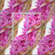 Delicate orchid watercolor botanical painting pink with a hint of green to red patterned fabric. Original fine art Hebrideaui orchid: Dactylorhza majalis painting and design by Sarah Trett.