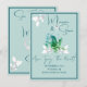 This is a wedding Save The Date card, shown in pastel mint with bright green orchid and white flowers artwork. It features a Tying The Knot design. The reverse includes the couple's first names and "Save The Date!" text with complimenting artwork. Message MineByDesign for assistance with custom orders.