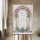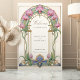 Welcome your guests in style with this beautifully designed wedding welcome sign, featuring a stunning arrangement of orchids in delicate pastel hues of pink, lavender, cream, and blush. The intricate watercolor artwork is framed by an elegant gold and blue arch, adding a touch of regal sophistication to your ceremony decor. This sign is perfect for a garden or botanical-themed wedding, offering a harmonious blend of classic beauty and modern artistry. The lush floral design sets a romantic tone, ensuring your special day begins with a warm and inviting atmosphere.