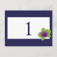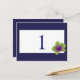 Add style and panache to your wedding tablescapes with these custom orchid table numbers featuring a blue background and green and purple gradient orchid.