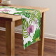 Orchids and palm leaves, pink, yellow, green and w short table runner
