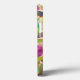The orchids are blooming again in the garden, in the original photograph by ZoeSPEAK on this iPhone 13 Case. The flowers, emerging from a curving green stem, have purple centers which blend into yellow at the tips of the petals. The natural wood background sets off the sculptural shapes and colors.
