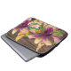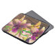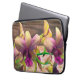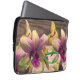 The orchids are blooming again in the garden, in the original photograph by ZoeSPEAK on this 13” Laptop Sleeve. The flowers, emerging from a curving green stem, have purple centers which blend into yellow at the tips of the petals. The natural wood background sets off the sculptural shapes and colors.