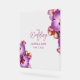 Orchids provide an ornamental backdrop for this acrylic wedding sign. Great for warm weather events, weddings, anniversaries, outdoors, indoors. Use to complement floral wedding event themes, including tropical themes. Easily add the names of the wedding couple and date of the wedding ceremony to the front and back. Use the template to personalize.