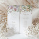 This sophisticated wedding ceremony program features a stunning watercolor design with delicate orchids in a palette of soft pastels, including shades of pink, lavender, cream, and blush. The front of the program elegantly presents the order of the ceremony, surrounded by graceful floral elements that evoke a romantic, garden-like ambiance. The back continues this theme with a detailed list of the wedding party, highlighted by the same luxurious floral motifs. Perfect for a garden or botanical-themed wedding, this program blends classic elegance with modern artistry, providing a memorable keepsake for your guests.