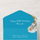 Orchid birthday party invitation for her in aqua blue. A special all-in-one party invitation with detachable RSVP card has realistic white orchids over pretty blue paper. The white wording is a modern script font. The reply card has a panel in white so name and reply is easy to read. Orchids are white stems with yellow centers and decorate the inside and outside of the cards. Three address templates have been provided for the recipient, return address and reply card address.