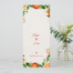 Featuring beautiful watercolor oranges, florals, and lush greenery, this double-sided card lists your wedding party and includes a heartfelt thank-you message. The back showcases your names and wedding date with delicate botanical accents — a keepsake guests will treasure.