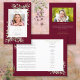An elegant burgundy and gold botanical personalized watercolor greenery order of service funeral memorial program. Designed by Thisisnotme©