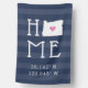 Show some home state pride with this cool Oregon house flag. Design features "HOME" in white lettering on a classic navy blue stripe background. Customize the location of the pink heart inside the state silhouette by using the design tool. Search for your coordinates on any mapping site and enter them in the template field provided. Makes a unique custom housewarming gift for new homeowners and a perfect addition to your Oregon home!