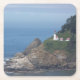 Classic coastal photograph of a white lighthouse with red roof in Oregon with a calm sea.
