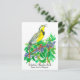 A postcard featuring the Western Meadowlark singing as he perches on an Oregon Grape bush inspired by the State Bird and State Flower of Oregon drawn with black pen and ink and painted with watercolor.