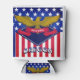 This design displays the flag of The United States with a gold bald eagle and the words Oregon in a blue and white gradient text. Perfect for showing your pride in the state of Oregon.