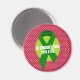 Well Designed High Quality Magnet. Colors are Vibrant Clear Excellent good size Diameter Circumference Fonts Red Folio Bold Clover Green Outline Puffy White Interior Image