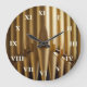 In this round clock specially designed for musicians, the golden organ pipes of Bridlington Priory are set behind clock face white roman numerals in the Times Roman font.