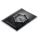 Organic chemistry notebook with a black and white photo of a structural chemical formula of a benzene molecule, created from metal rods and balls over patterned floor tiling. This chemical notebook has the customisable text "Organic chemistry notebook". Great design for a chemist, scientist and everyone interested in organic chemistry and this field of science.