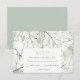 These 5" x 3.5" wedding RSVP response cards feature an abstract leaf design in shades of dusty sage and khaki with lines for the guest to fill their name and to select their choice for attending.