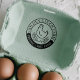 Promote your organic, free-range eggs with this charming circular stamp! The design features a cute chicken illustration and clearly communicates the quality of your product. Customize it with your farm or business name for a professional touch. Perfect for farmers' markets, direct sales, and branding your eggs. High-quality self-inking stamp.