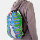 Express your bold side with this vibrant drawstring backpack showcasing the Organic Geometry design. A kaleidoscope of mirrored blue, green, red, and white forms dance across the surface—perfectly symmetrical, wildly unique.