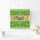 This green saying reads Organic in green letters with vintage art of acorns and leaves, on a background of scrolling green leaves and vines. Click Customize It to change fonts, background colors, even save your design for later.