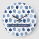 ORGANIC NAVY BLUE INDIGO DOTS TIE DYE PATTERN LARGE CLOCK