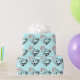 A cartoon image of an organist playing, with the words "Happy birthday!" in red over the image, make an ideal wrapping paper for a present to any church musician. The background is blue.