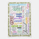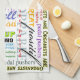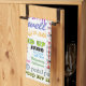 A very colourful and sturdy tea towel (or kitchen towel) that should stand up to a great deal of wear for many years. Beautifully finished off and packaged. I was only dismayed about the cost of shipping which was ludicrous. Printing was super but (since I designed it) I would now change the yellow lettering to a bit darker to make sure it shows up. Very bright and clear otherwise, and a fun towel as a result.