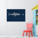 Don't panic. Organize. Even the biggest tuna is no match for the smallest sardine when organized. Features realistic image of organized little fish like anchovies and sardines turning on a big fish, which happens to be a tuna.