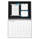 Calendar with cute little designs of a scroll, torn paper with tape, and papers with a paperclip, that you can write on. To-do, notes, and events spaces. Decorated with a blue quill. You can personalize this with your name. Suggestions on the back cover which you can keep or remove and put in place a photo there if you like.
