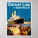 Early Twentieth Century ocean liner advertising poster for Orient Line's services to Australia, showing a transit of the Suez Canal.