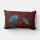 This pillow has a deep, cranberry colored background with beautiful, detailed oriental fans in shades of teal blue. Has a definite Asian Oriental feel and would make a stunning accent pillow on a living room sofa or in the bedroom.