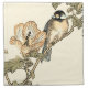 This art print displays sharp, vivid image of an oriental bird perched on a branch. Below it there is an orange flower with a high degree of color accuracy. This contemporary fine art print of a traditional Oriental-inspired art will add character to any wall in your house.