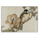 This art print displays sharp, vivid image of an oriental bird perched on a branch. Below it there is an orange flower with a high degree of color accuracy. This contemporary fine art print of a traditional Oriental-inspired art will add character to any wall in your house.