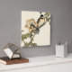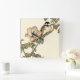 This art print displays sharp, vivid image of an oriental bird perched on a branch. Below it there is an orange flower with a high degree of color accuracy. This contemporary fine art print of a traditional Oriental-inspired art will add character to any wall in your house.