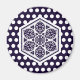 Decorate your fridge with this round magnet with this beautiful white and blue ware Turkish Ottoman rosette pattern. The background is blue with a polka dot in white.