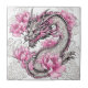 Oriental Dragon with Vibrant Pink Flowers Ceramic Tile