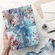 Colorful,vibrant,whimsical fine art illustration for Turkish Fairy Tale ; Golden Apple .Beautiful princess with her lover,a flying hawk ,blue sky and falling red roses,original watercolor painting in god blue floral sparkles by Bulgan Lumini (c)