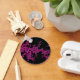 A beautiful oriental floral design of cherry blossoms in colors of fuschia on a black background. Has the look of embroidered fabric.