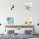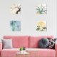 Each print features soft, dreamy watercolor brushstrokes: delicate pink plum blossoms, serene purple orchids, lush green bamboo, and sunny yellow chrysanthemums, all set against muted, calming backgrounds. The minimalist yet poetic style blends seamlessly with modern, bohemian, or traditional decor—perfect for framing and displaying as a set (or individually) in your living room, bedroom, or office.