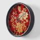 Oriental Golden Flowers on Red Wall Clock