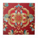 Oriental Golden Flowers Red Background Ceramic Tile