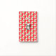 This awesome patterned light switch cover features a graphic design image of a lucky oriental white waving cat. The cat has beautiful gold eyes and is wearing a gold medallion on the collar around its neck. The cat has pink ears and whiskers. This cute little kitty is holding a golden token with green jade inlay and a message in golden text that says "Good Luck".