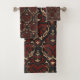 Oriental Pattern - Black and Red Leather Bath Towel Set