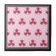 Decorate your house with this ceramic decorative tile with a Japanese Three Geese Japanese Kamon in pink and grey. The background is light pink, the border is dark gray.