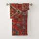 Oriental rug -bold design in red and blue - an antique image is PRINTED on this Bath Towel set - illustration from an antique book- it was edited and applied on this set by Alma Wad .